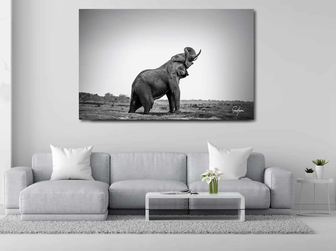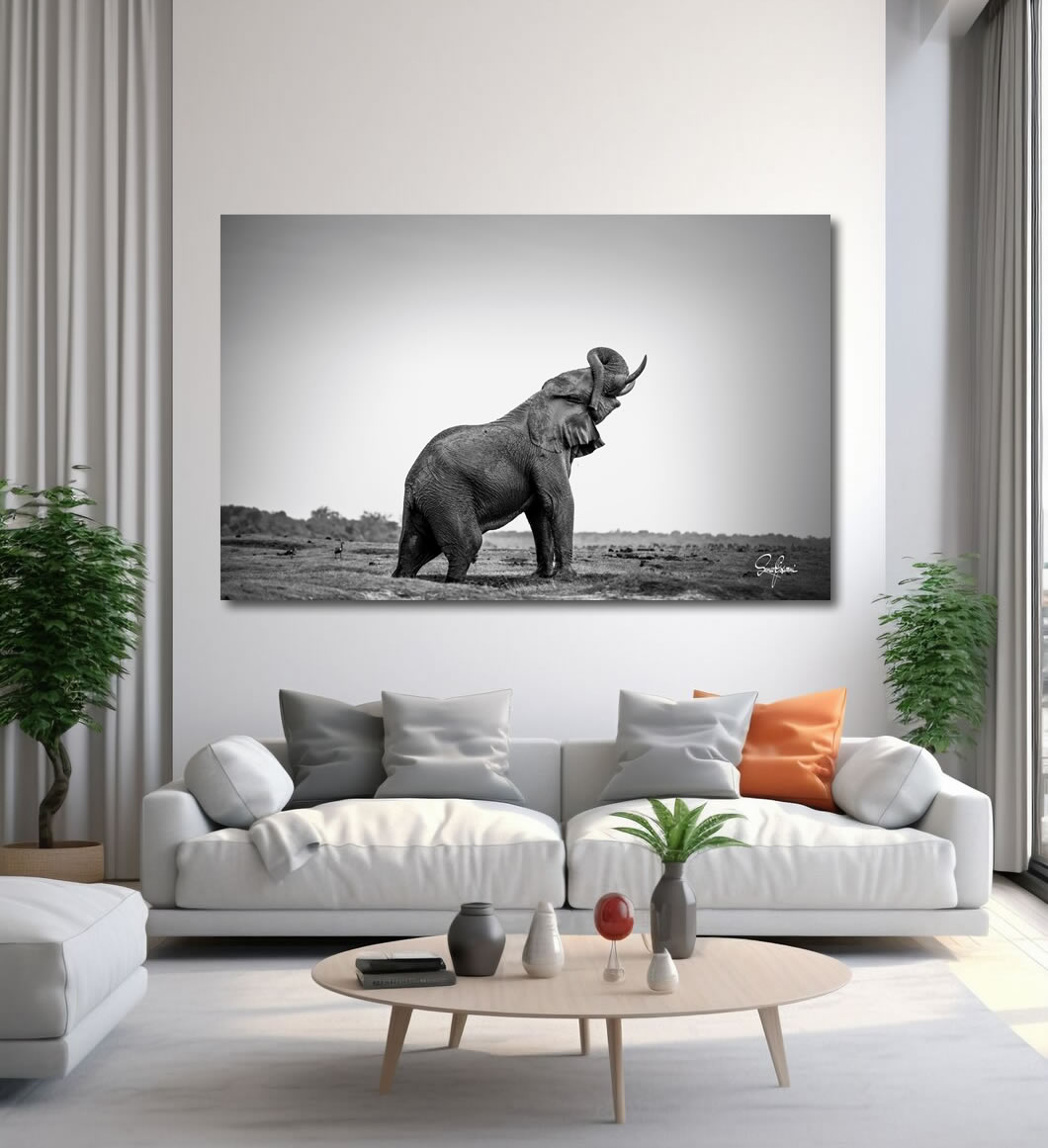 The elephant was having a mud bath, enjoying himself. This pose reminds me of a Greek sculpture, albeit a natural one. Presented in a wide and cropped version for a more intimate feel.
